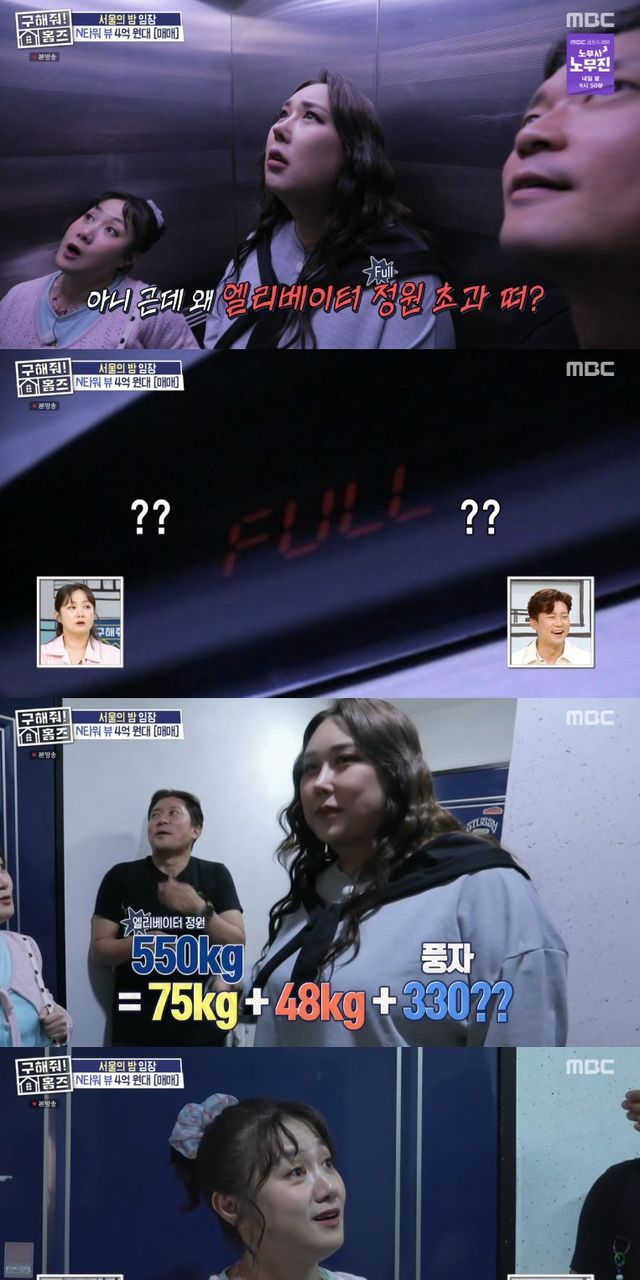 바로 엘리베이터에 'FULL'이라는 정원 초과 표시가 떴기 때문. 풍자는 "근데 우리 3명 탔는데 왜 'FULL'이 뜨냐"며 의아해했고, 내린 후에는 직접 무게를 계산해 눈길을 끌었다.