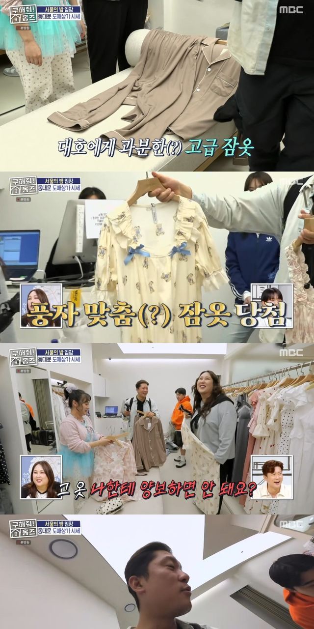 그렇게 '동대문 임장 기념 잠옷 임장'이 즉석에서 진행됐고, 김대호가 박나래와 풍자의 잠옷을, 두 사람이 김대호의 잠옷을 고르는 방식으로 쇼핑이 시작됐다.