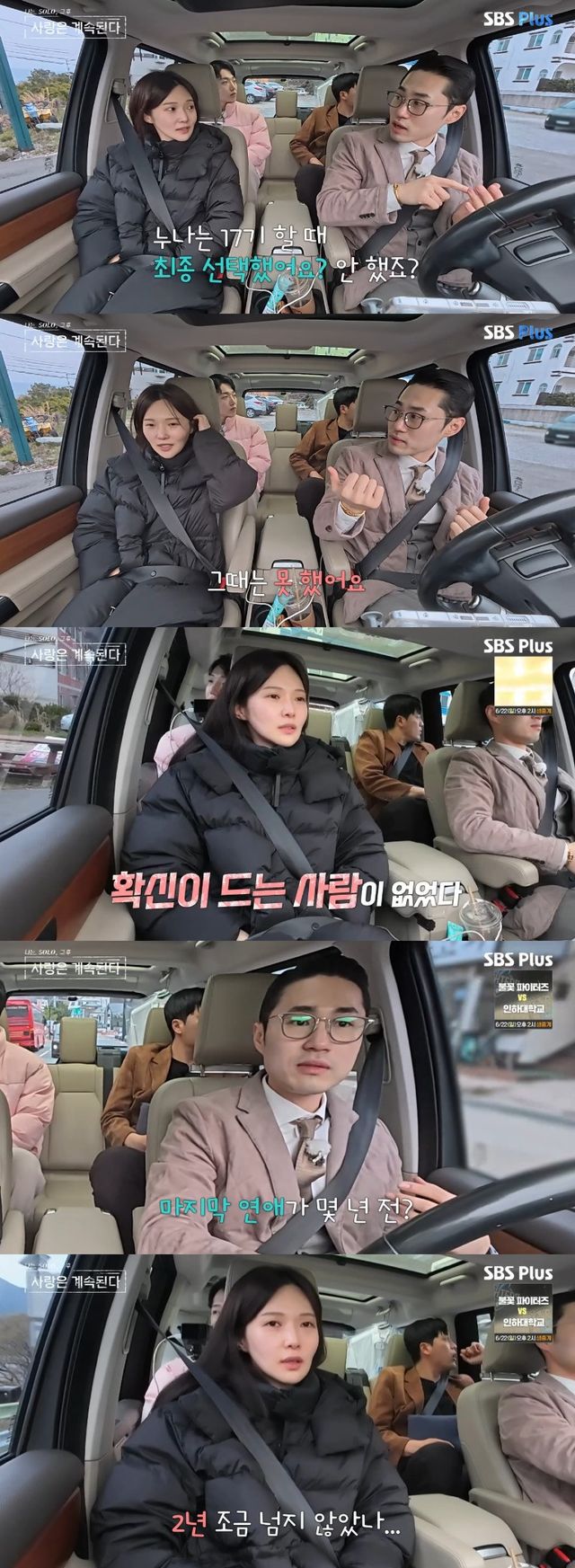 차량으로 이동하는 도중, 17기 옥순은 "('나는 SOLO' 출연 당시) 최종 선택을 했냐"는 질문에 "못 했다. 확신이 드는 사람이 없었다"고 솔직하게 답했다.