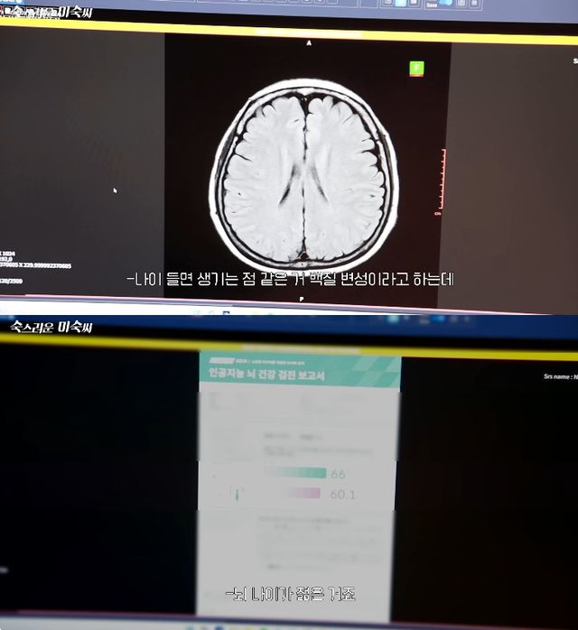 이후 이미숙의 뇌 사진 검사 결과가 나와 눈길을 끌었다. 의사는 "나이 들면 생기는 점 같은 거를 백질 변성이라고 하는데 그런 게 전혀 없었다. 나이에 비해 굉장히 좋다"면서 뇌졸중이나 뇌경색이 있을 때 나타나는 반응들도 없다고 설명했다.