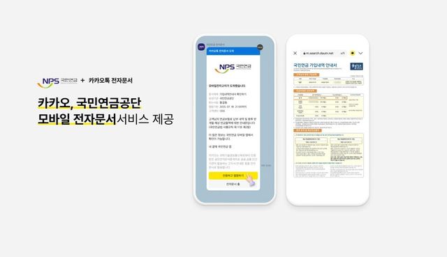 [엠투데이 이정근기자] 카카오가 국민연금공단과 협업해 모바일 전자문서 서비스를 제공한다고 19일 밝혔다. 카카오톡 이용자라면 별도의 회원가입이나 앱 설치 없이 연금 관련 다양한 문서를 간편하게 받아볼 수 있게 됐다.