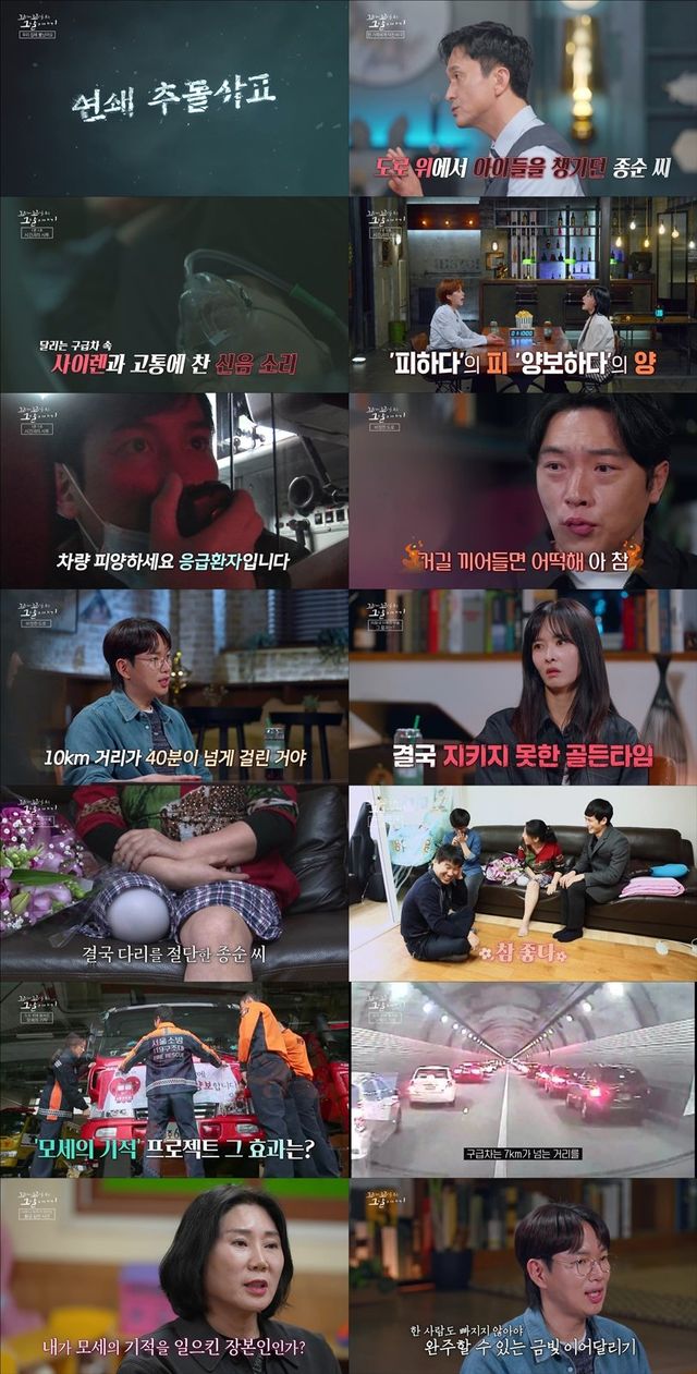 ‘꼬꼬무’가 하지 절단 환자의 이송 중 양보하지 않는 차량들로 인해 골든타임을 놓쳤던 충격적인 사건을 이야기하며 그로 인해 생겼던 ‘모세의 기적 캠페인’과 현재의 모습을 공개해 잔잔한 감동을 전했다.