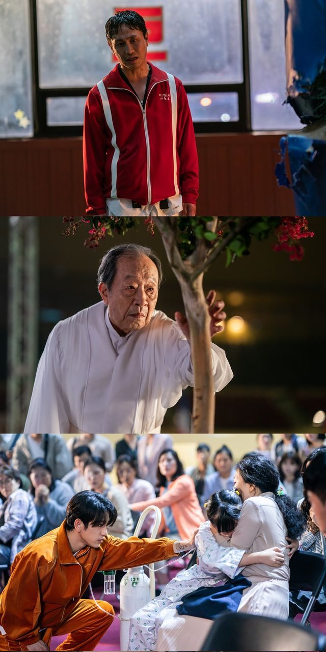 한편, 비에 젖은 채 금쪽같은 딸 ‘완서’를 혼내는 ‘종민’(오정세)의 모습은 이들에게 심상치 않은 일이 벌어지고 있음을 암시하고 단 한 번의 손길로 나무의 생명력을 앗아가는 새신교 교주 ‘영춘’(신구)의 능력이 섬뜩함을 유발한다. 여기에 초능력으로 인해 젊어진 ‘영춘’(박진영)이 몸이 아픈 신자들을 치유하며 현혹하는 모습은 이제껏 보지 못한 2인 1역 빌런의 등장을 알리며 극의 몰입도를 끌어올린다. 마지막으로 모든 초능력을 독차지하고자 하는 ‘영춘’과 그에 맞서는 ‘완서’의 액션은 이들이 펼칠 강렬한 클라이맥스에 대한 궁금증을 증폭시킨다.