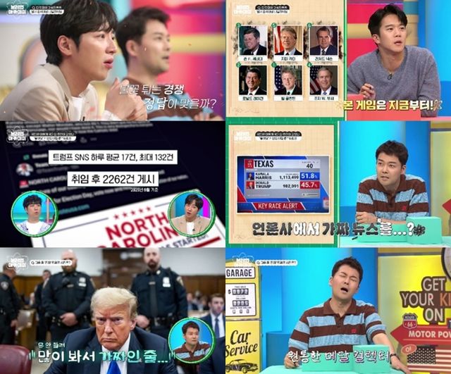 그런가 하면, 김지윤 박사는 “트럼프가 하루 평균 17건 정도의 SNS 글을 올린다”며 현 미국 대통령 도널드 트럼프를 소환했는데, 전현무는 “(트럼프는) 너무 MZ야~”라며 웃었고, 하석진은 “디지털 디톡스가 필요한 것 같다”고 솔직하게 말해 폭소를 자아냈다. 직후, 김지윤 박사는 “트럼프 대통령은 가짜 AI 이미지를 고지 없이 올려서 논란이 되기도 했다”며 마지막 퀴즈로 ‘다음 중 진짜 트럼프 대통령 사진을 찾아라’는 문제를 냈다. AI 사진과 진짜 사진이 뒤섞인 가운데, 전현무는 “4번처럼 인자한 사진은 본 적 없다. 탈락!”이라고 센스 있는 추리력을 발산했다. 윤소희는 “넥타이 색깔이 중요한 것 아니냐”며 ‘매의 눈’을 가동했고, 궤도는 “3번은 아웃포커싱이 이상하다”고 짚었으나 모두 정답 맞히기에는 실패했다. 이렇게 마지막 퀴즈를 놓친 ‘브레인 6인방’은 정치 분야의 ‘지식 메달’ 획득에는 실패해 다음 도전을 기약했다.