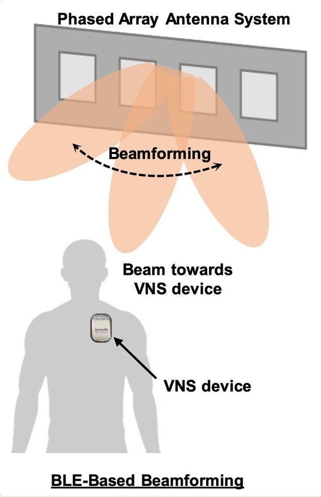 이번 기술은 이식형 미주신경자극기(Vagus Nerve Stimulation, VNS)에 적용 가능한 소형 위상배열 안테나(Phased Array Antenna, PAA) 기반으로, BLE 통신 모듈과 디지털 위상 제어 기술을 결합해 실시간 무선 신경자극이 가능하도록 설계됐다.