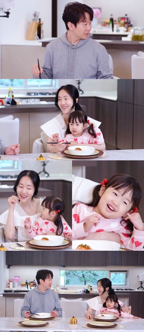 이정현은 그때를 회상하며 즉석에서 “잘 자, 내 꿈 꿔”를 재현했다. 이때 이를 보던 첫째 딸 서아가 “잘 자, 내 꿈 꿔”를 똑같이 따라하며 엄마의 손동작 디테일까지 완벽 복사해 웃음을 줬다. 그러나 정작 이정현 남편은 묵묵히 비빔국수만 폭풍 흡입했다고.