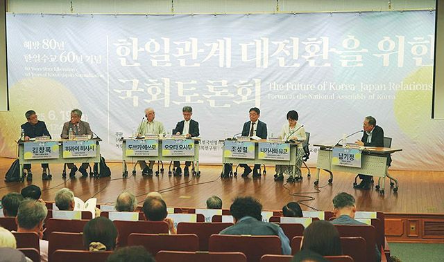 19일 국회도서관 강당에서 (사)외교광장, 독립유공자유족회가 주관하고 민족화해협력범국민협의회,한일협정재협상국민행동, (사)현대사기록연구원, 역사기억평화행동, 서울대 일본연구소, (사)외교광장. 조국혁신당 김준형의원실이 공동으로 주관하는 해방 80년, 한일수교 60년 기념 한일관계 대전환을 위한 국회토론회가 열렸다.