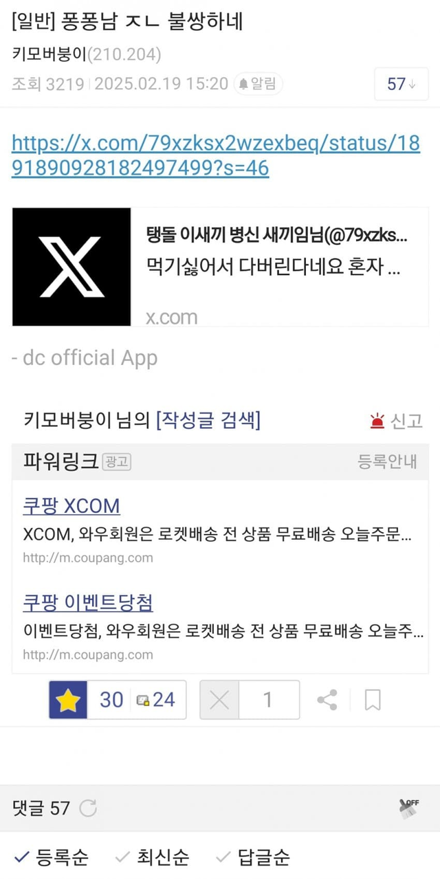 닉네임도 '탱돌 병신새끼'로 창씨개명ㅋㅋㅋ