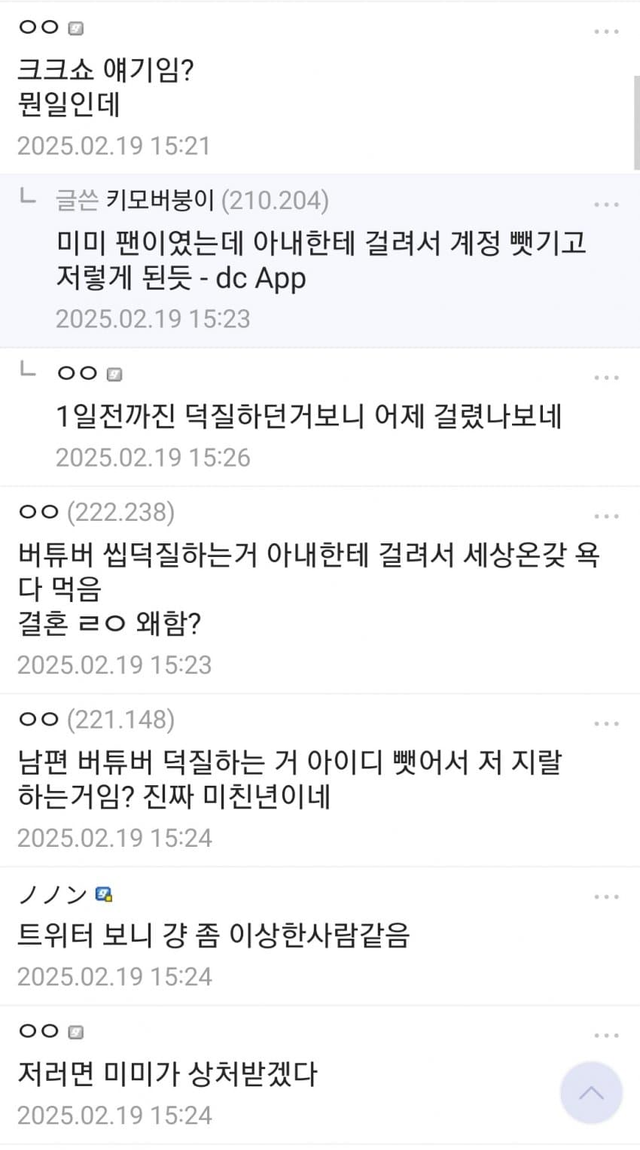 아내한테 걸려서 계정을 탈취당했다고 함....