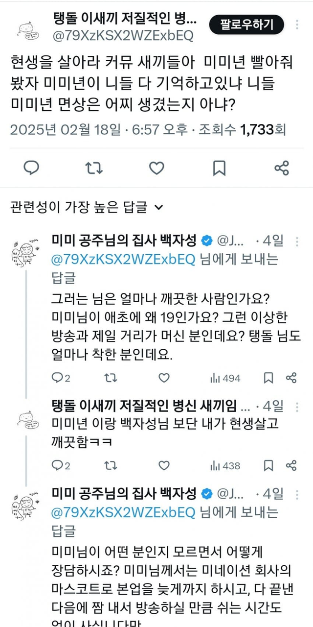 "미미년 빨아줘봤자 니들 다 기억하겠냐?"