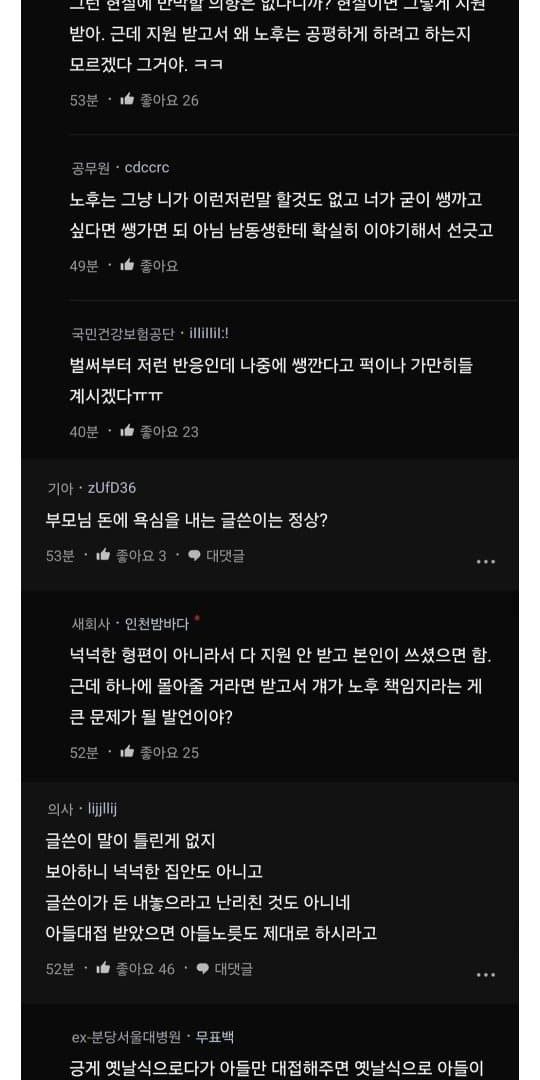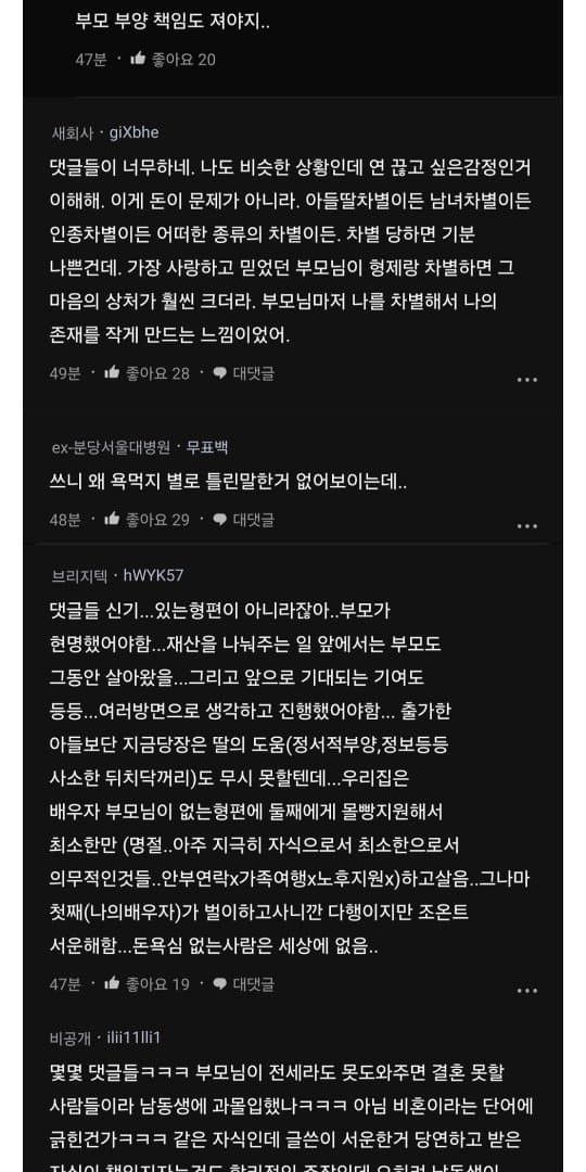재산은 남동생한테만 주고 부양은 똑같이 하래