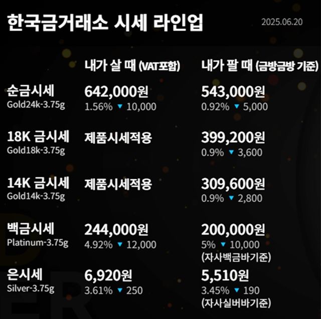 순금(24K) : 매입가 64만 2000원 / 매도가 54만 3000원