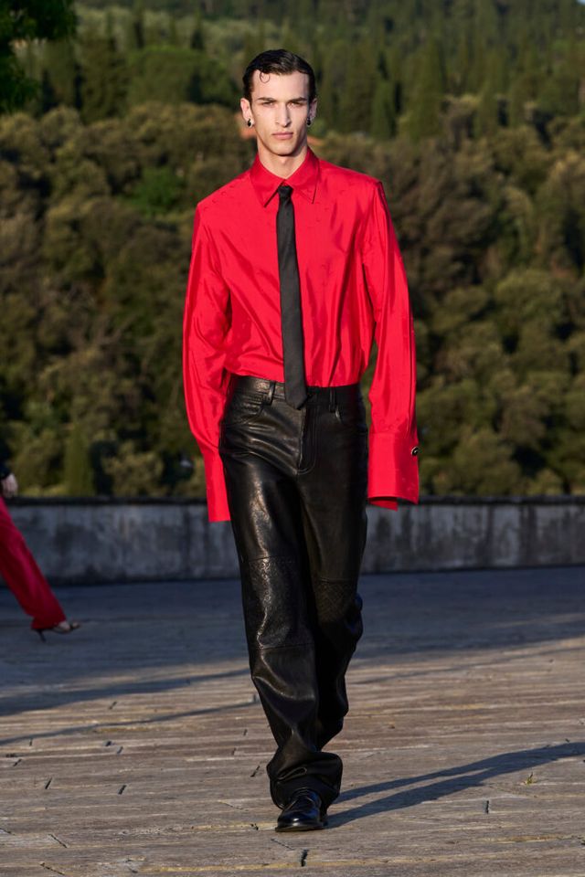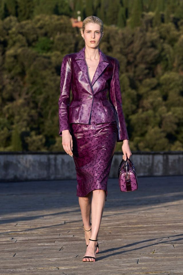 NOTE 세계 최대의 남성복 박람회, 피티 워모(Pitti Uomo)에 게스트 디자이너로 참여한 마린 세르의 쇼는 피렌체의 아름다운 풍광과 15세기 정원으로 둘러싸인 빌라 디 마이아노(Villa di Maiano)에서 펼쳐졌다. 빈티지한 보석으로 풍성하게 장식한 크리놀린 스커트 룩을 시작으로 더블브레스트 수트와 아이코닉한 초승달 패턴을 새긴 가죽 룩이 연이어 등장했다. 가정용 리넨과 레이스를 리사이클링한 후반부의 화이트 룩을 통해 화합과 평화의 메시지를 전하는 것도 잊지 않았다.