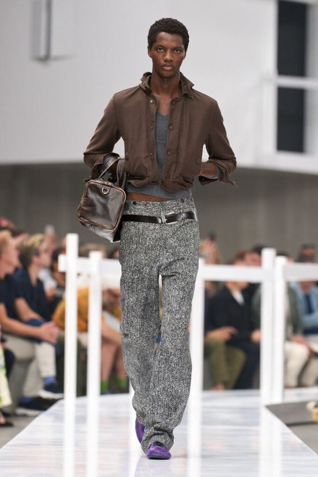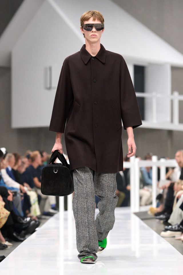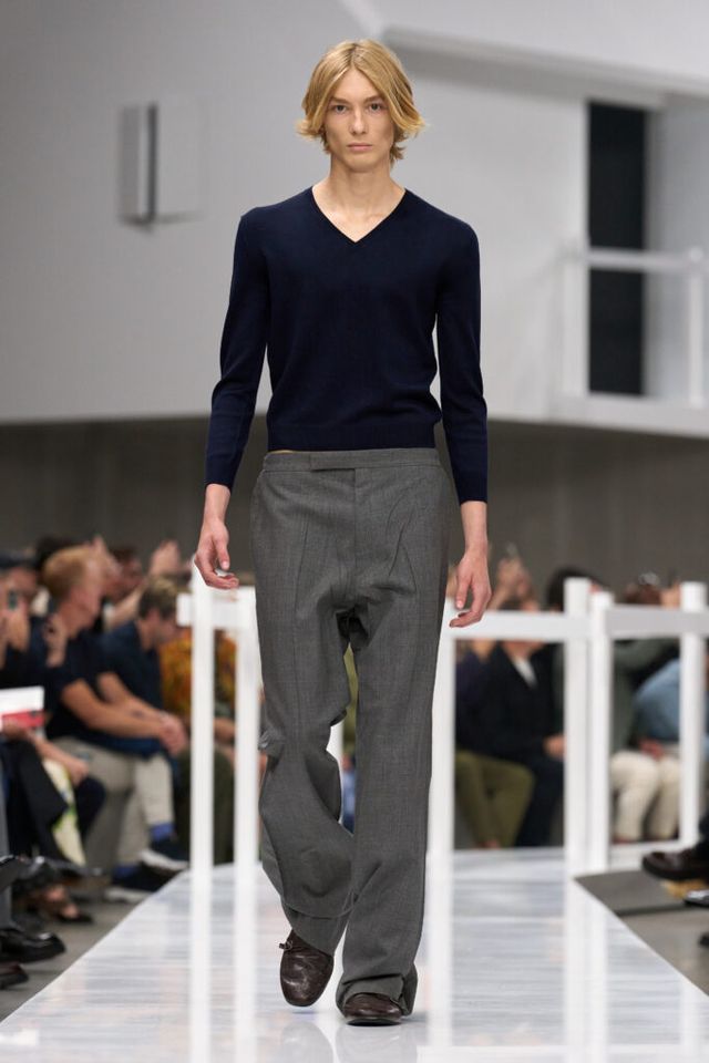 FAVORITE LOOK 두말할 필요 없이 프라다 그 자체인, 그래서 놀랍도록 아름다운 브이넥 니트 스웨터와 그레이 팬츠를 매치한 오프닝 룩