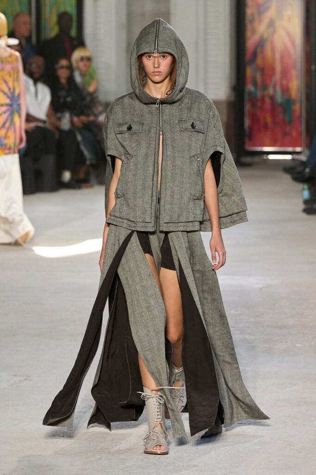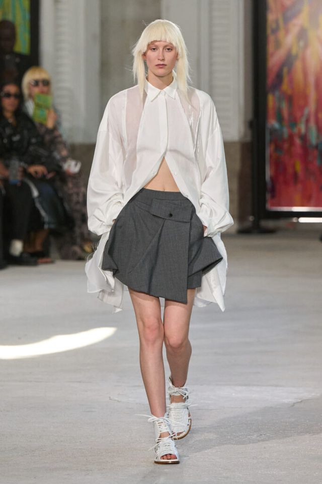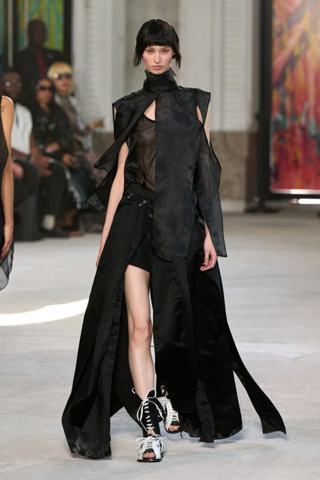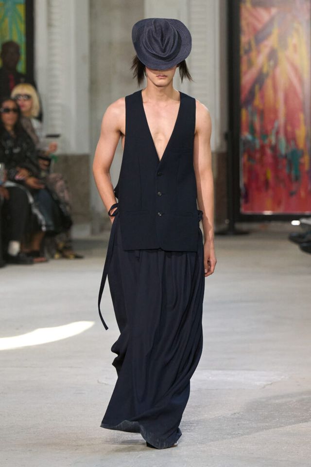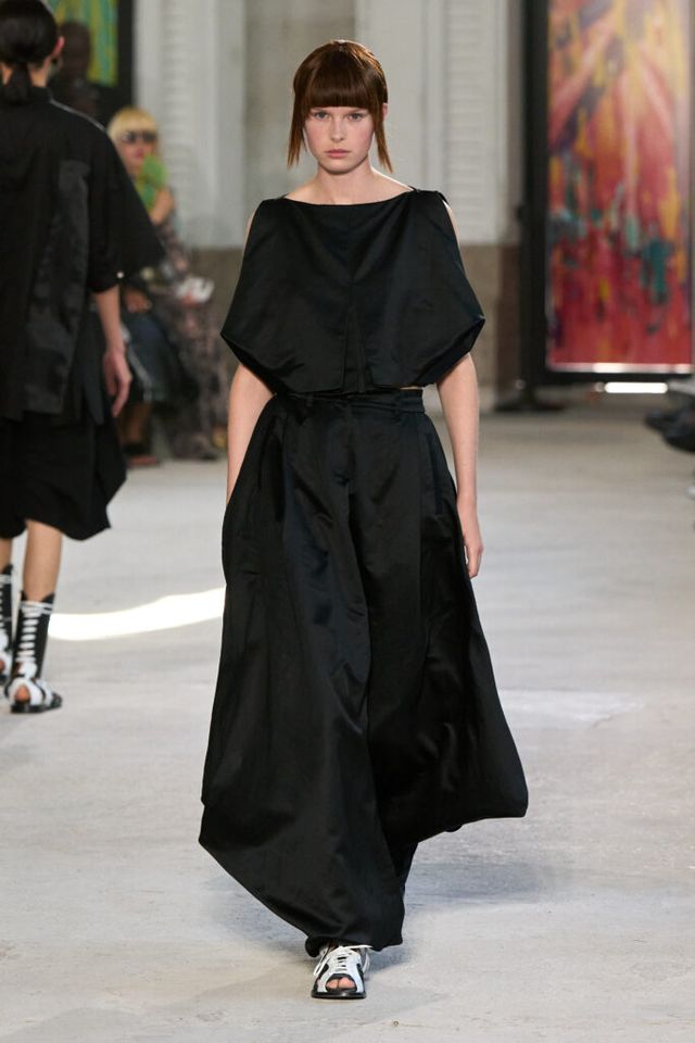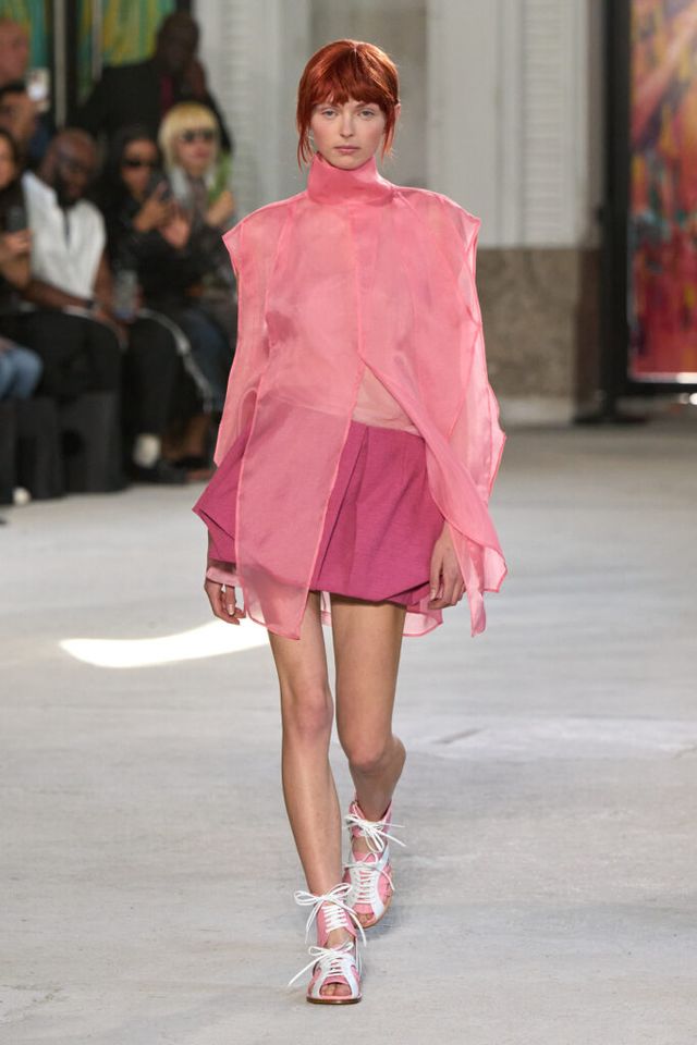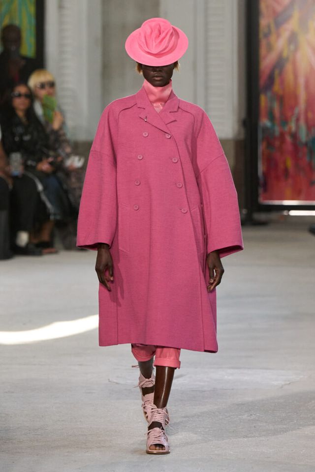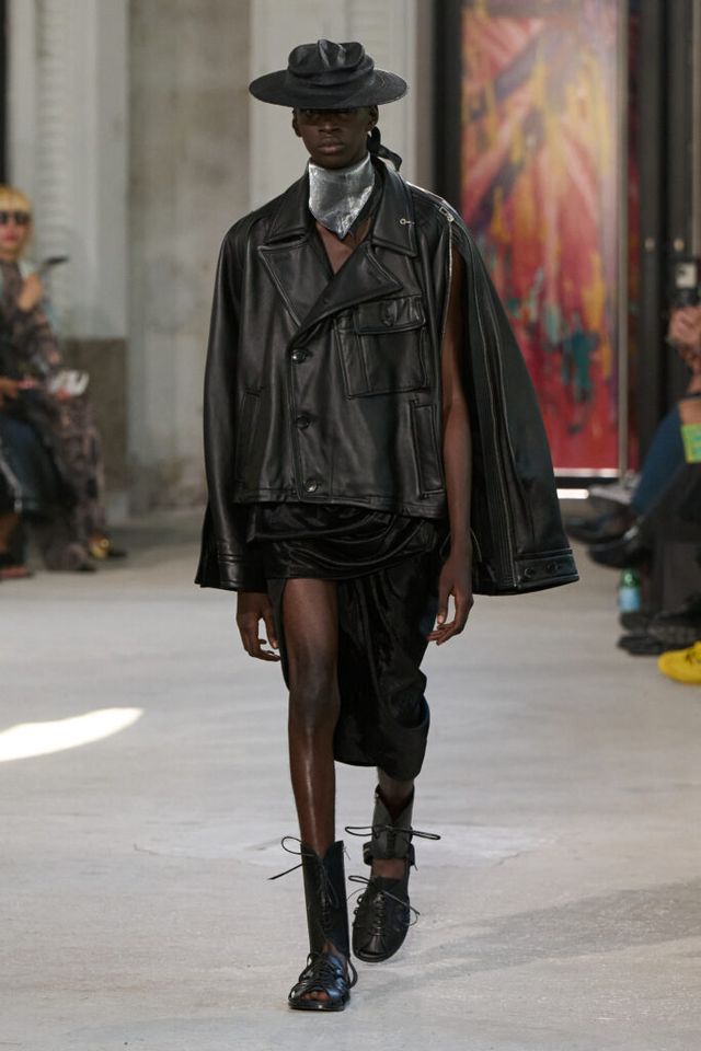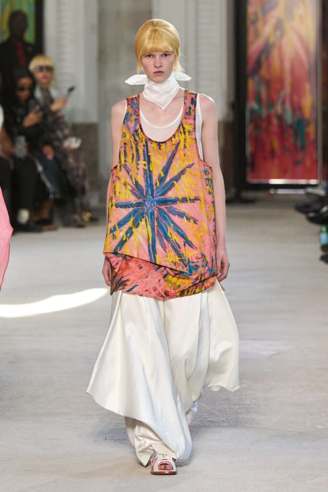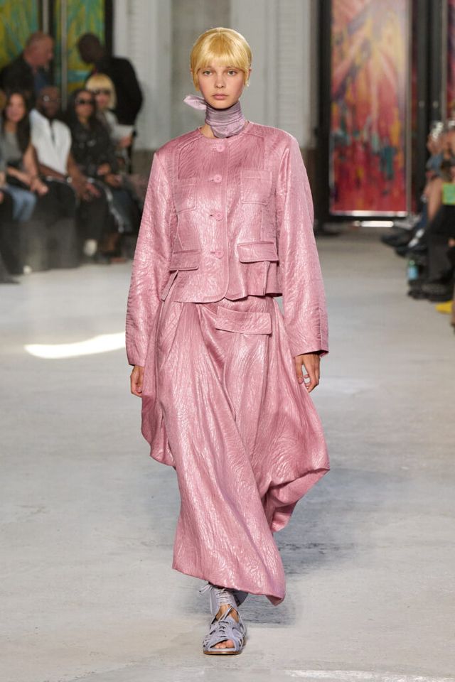 NOTE 첫 여성 컬렉션을 함께 선보여 화제를 모은 2025 S/S 송지오 컬렉션. ‘밝은 별(Bright Star)’이라는 타이틀로 전개한 쇼는 무한한 상상력에 경계 없는 순수성을 지닌 젊은 소년과 수채화에서 영감 받은 요소를 버무려 경쾌한 컬러와 프린트를 선보였다. 봄여름에 어울리는 실크와 오간자 소재의 가벼운 윈드브레이커와 크롭트 팬츠, 블루종도 과거 컬렉션에 비해 경쾌하고 산뜻한 분위기를 더했다.