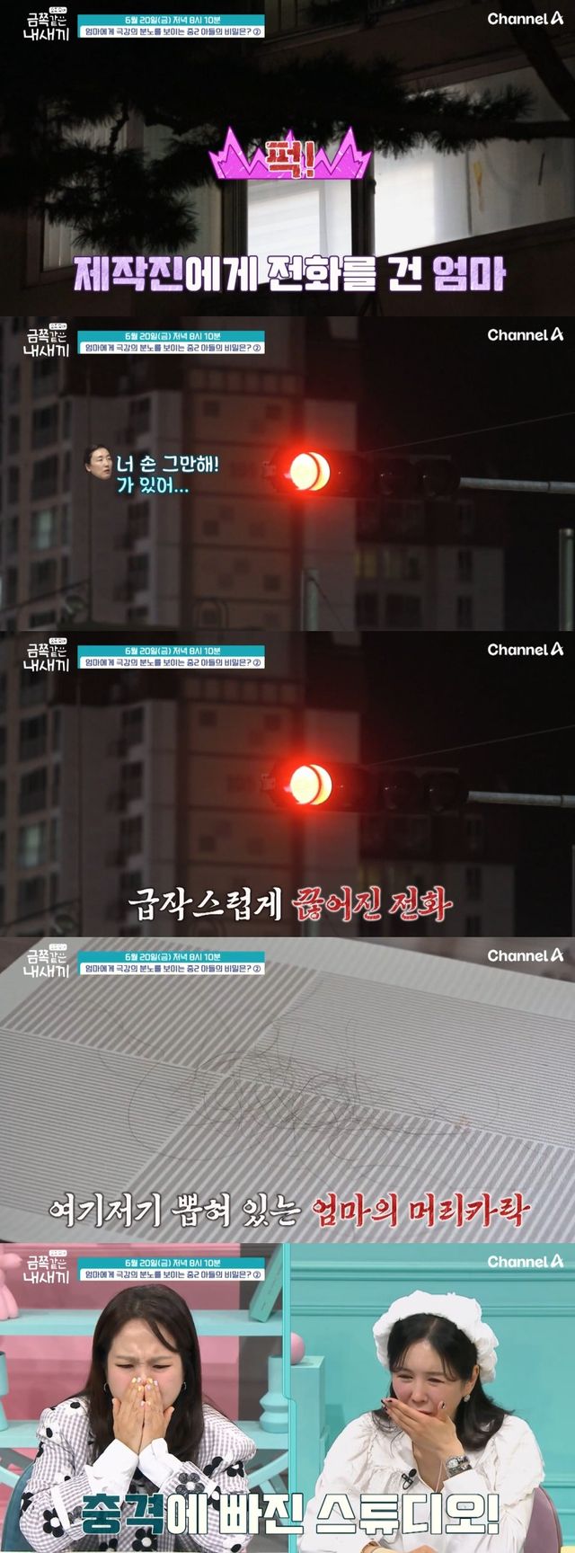 결국 바로 집을 다시 찾아간 제작진은 문을 열고 들어갔고, 집안 곳곳에 엄마의 머리카락이 뽑혀 있어 충격을 자아낸다.