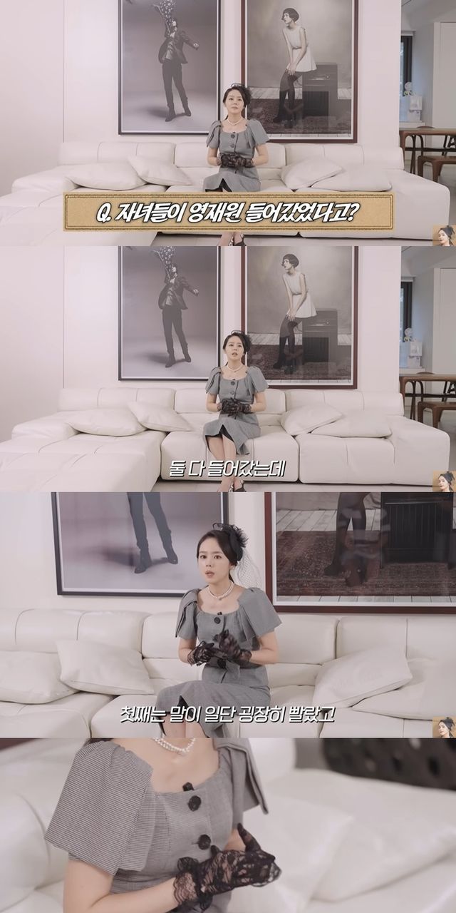자녀에 대해서 그는 "첫째는 말이 굉장히 빨랐고, 40개월쯤 됐을 때 한글과 영어를 혼자 뗐다. 제가 그래서 그때 이상하다 생각해서 (영재원에) 갔다"며 책을 읽어주면 처음부터 끝까지 줄줄 외우더라"고 전했다.