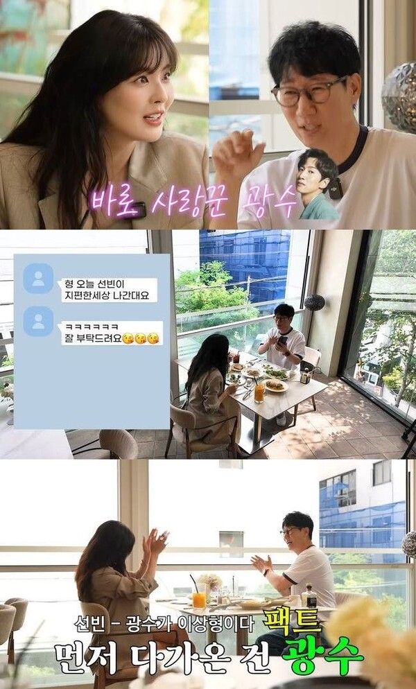 지석진이 "사실 광수 이야기를 안 할 수가 없다"고 하자, 이선빈은 "하셔도 된다. 이제 나한테는 (이광수 이야기가) 안 나오면 이상하다"며 웃었다.