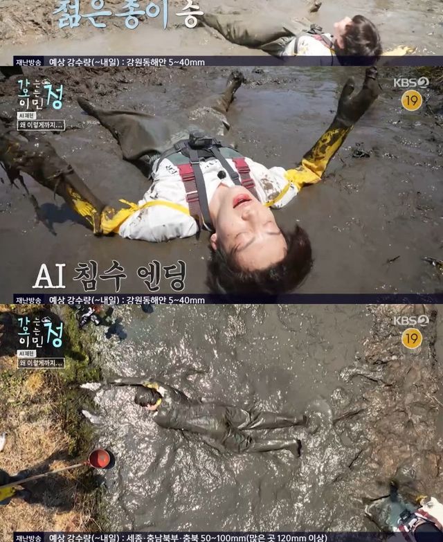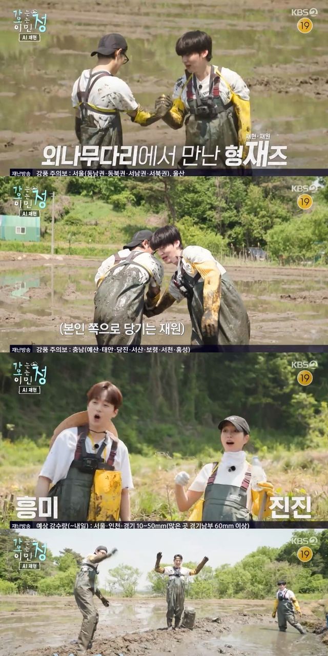 이후 바닥이 드러날 정도로 물이 빠지자 이찬원은 "'1박 2일' 게스트로 나갔다가 한겨울에 입수하고 이틀 고생했다. 이거 한 3일 갈 것 같다"면서 힘든 마음을 토로했고, 김재원도 "전신 운동이다"라며 공감했다.