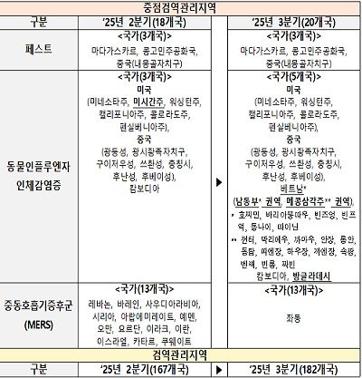 (표)2025년 3분기 중점·검역관리지역 변경