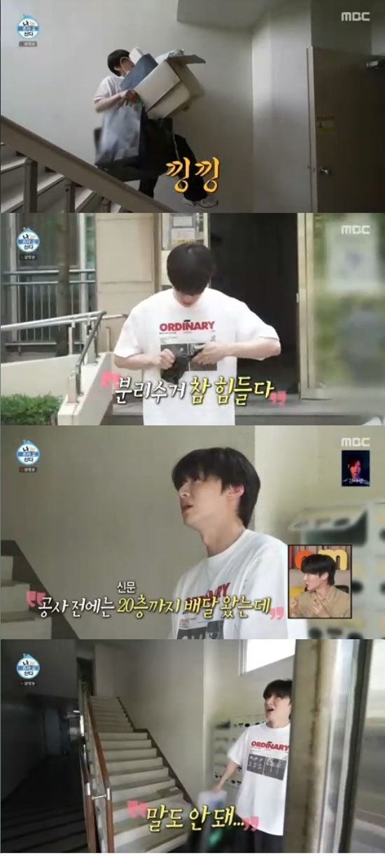 이날 안재현은 분리수거를 하러 내려가는데 엘리베이터 대신 계단으로 내려가 궁금증을 자아냈다.