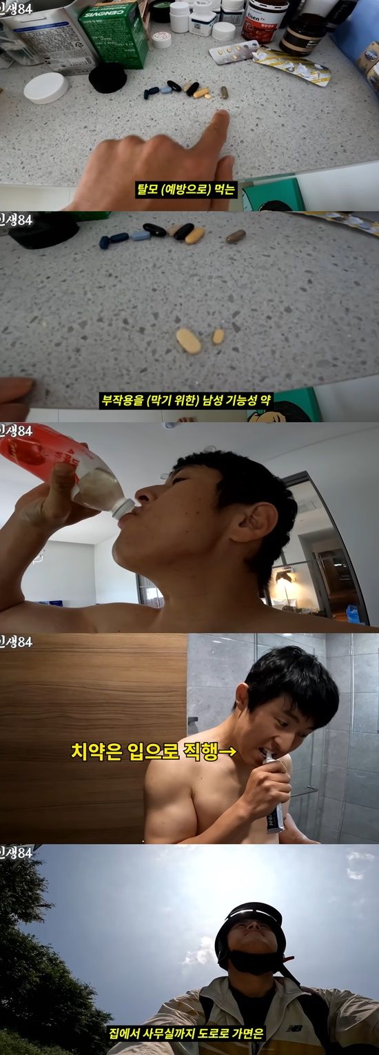 이후 그는 상의를 탈의한 채 약을 먹고 샤워 후 간단하게 출근 준비를 마쳤다. 그는 "여름에는 날이 좋아서 오토바이나 자전거를 탄다. 집에서 사무실까지 도로로 가면 직선이라 빨리 가는데 자전거를 탈때는 자전거 도로로 돌아간다"며 설명했다.