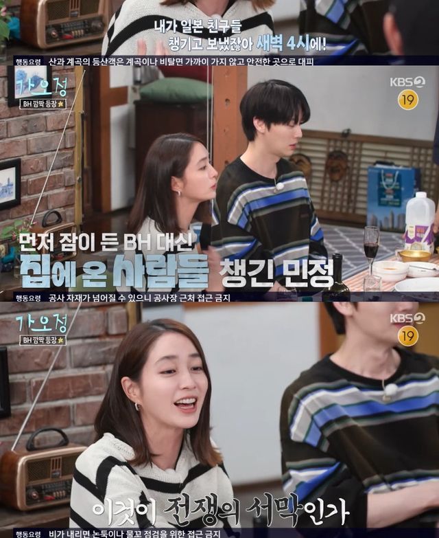 이날 이민정은 갑자기 사라진 김정현이 자러 간 게 아니냐는 의혹이 생기자 "먼저 잘 스타일이 아니다. 마지막에 사람들 자는 거 보고 설거지 마무리까지 한다"며 섬세한 성격을 칭찬했다.