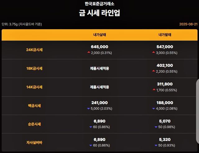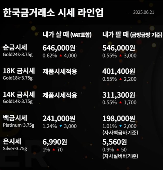 순금(24K) : 매입가 64만 6000원 / 매도가 54만 6000원