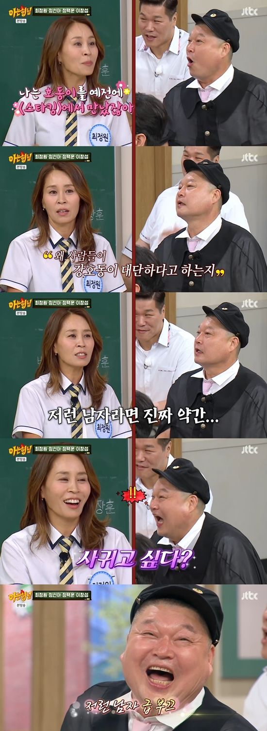 강호동은 "아이들의 눈높이를 다 맞추고"라며 직접 자신의 미담을 덧붙였다. 최정원은 "저런 남자라면 '사귀고 싶다'(라고 생각했다). 막 지어낸 건 아니다"라며 진심을 토로했다.