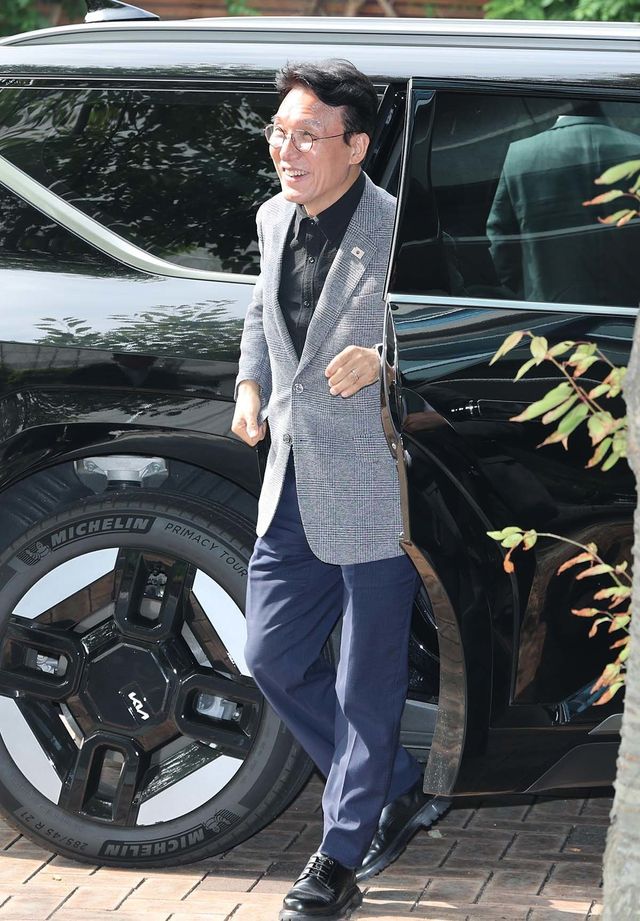 김민석 국무총리 후보자가 18일 오전 서울 종로구 통의동 금융감독원 연수원에 마련된 인사청문회 준비 사무실로 출근을 하고 있다. / 뉴스1