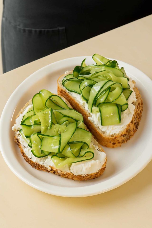 간단하게 완성된 '오이 그릭요거트 오픈 샌드위치'. 기사 내용을 바탕으로 AI가 생성한 자료사진.