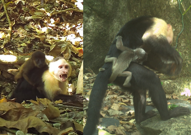 2022년 1월 26일, 연구진은 어린 수컷 ‘흰얼굴 카푸친 원숭이’ 한 마리가 ‘하울러 새끼 원숭이’를 업고 있는 장면을 카메라 트랩에 처음 담았다.