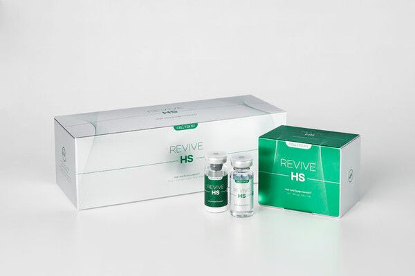 셀터미 리바이브 HS는 동결건조 파우더형 1제(336㎎)와 액상 솔루션 형태의 2제(7㎖)를 혼합해 사용하는 2제형 제품이다.