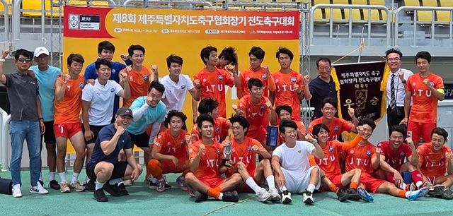 제8회 제주특별자치도축구협회장기 전도축구대회 대학부 정상에 오른 제주관광대. 제주자치도축구협회 제공