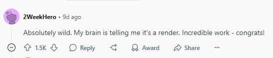 완전 미쳤다. 뇌가 이걸 렌더링이라고 말하고 있어. 정말 대단한 작업이야 – 축하해!