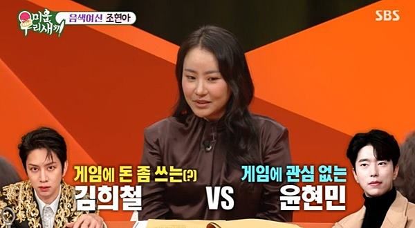 조현아의 대답은 ‘윤현민’이었다. 그는 “(윤현민과) 예전부터 알고 지낸 사이다. 워낙 성품이 좋고 노래도 좋아한다”고 답했다. 이어 “게임에 관심 없는 윤현민 vs 게임에 4000만 원 쓰는 김희철”이라는 질문에도 “윤현민”이라고 거듭 말해 폭소를 자아냈다.