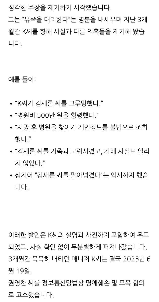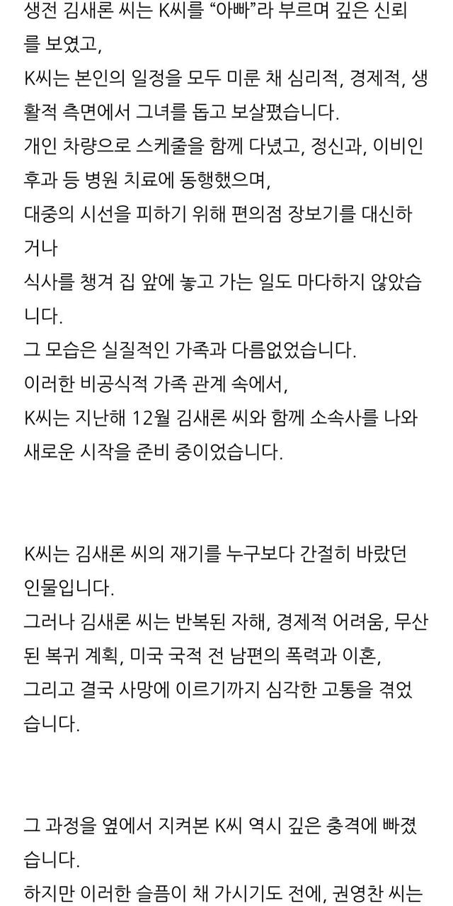 생전에 고인을 챙긴 전남친과 매니저 K씨는 공격하고,