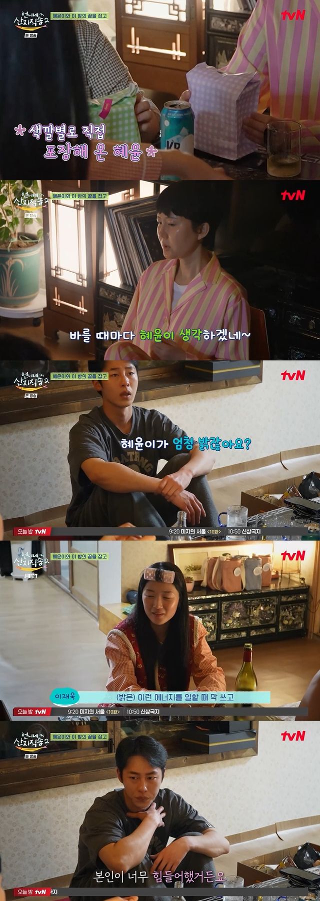 이날 게스트로 출연한 김혜윤은 저녁 식사를 마친 뒤 염정아, 박준면, 이재욱과의 술자리에서 "제가 사실 빈손으로 오기가 좀 그래서 선물을 준비했다"라며 직접 포장해 온 화장품 선물을 건넸다. 이에 염정아는 "바를때마다 혜윤이 생각해야겠네"라며 좋아하는 모습을 보였다.