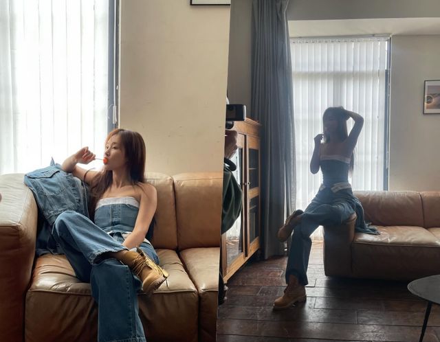 공개된 사진 속 권유리는 청청 패션과 크롭 티셔츠, 골드 워커 부츠 등을 활용한 빈티지하면서도 트렌디한 스타일링으로 시선을 사로잡는다. 브릭 벽 틈에 앉아 자연스럽게 포즈를 취하거나, 소파에 기대 사탕을 물고 있는 모습은 소녀의 장난기와 성숙한 무드를 동시에 자아낸다.