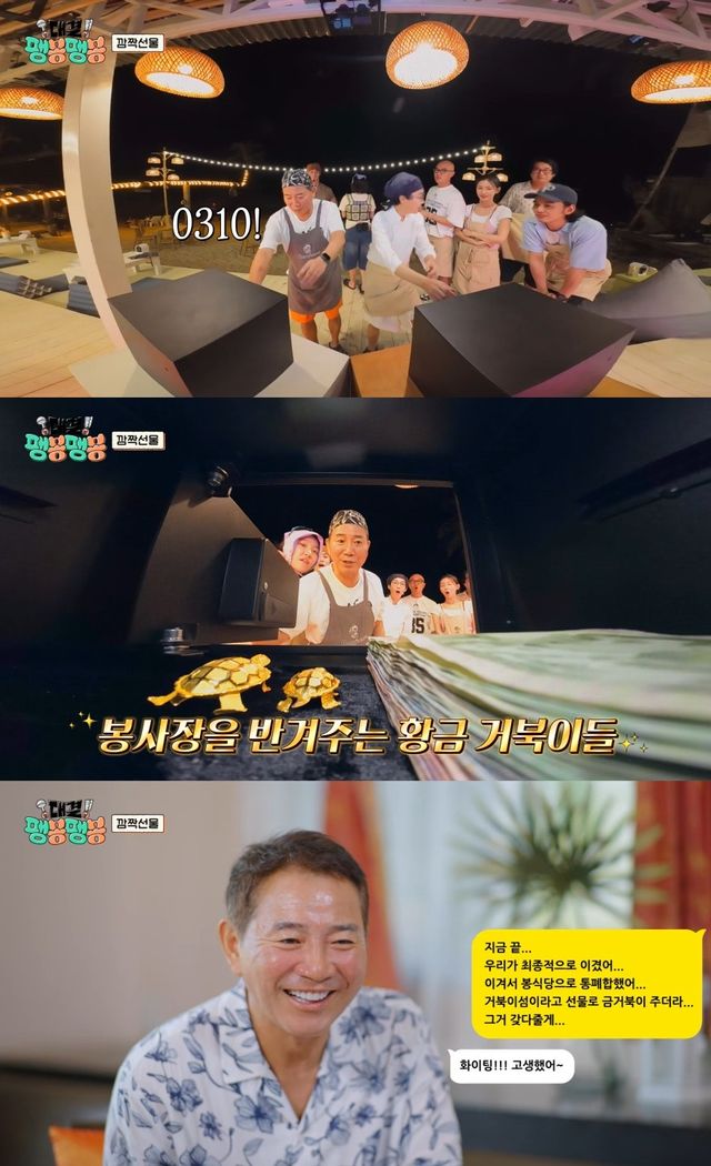 승리팀 상품의 정체는 황금 거북이와 돈다발이었다.