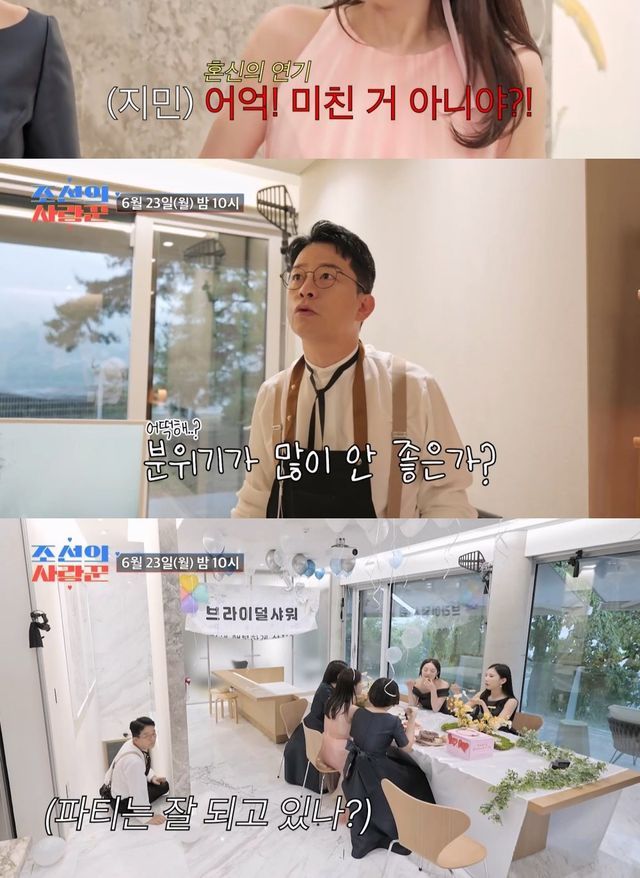 미리 공개된 브라이덜 샤워 VCR에서는 정이랑이 일부러 풍선을 밟아 터트리고, 김지민이 격하게 분노하는 모습이 담겼다. 심지어는 케이크까지 엉망으로 만든 뒤, 김지민이 “미친 거 아냐? (브라이덜 샤워) 망했다”고 말하며 김준호를 속이기 위해 전력을 다했다.
