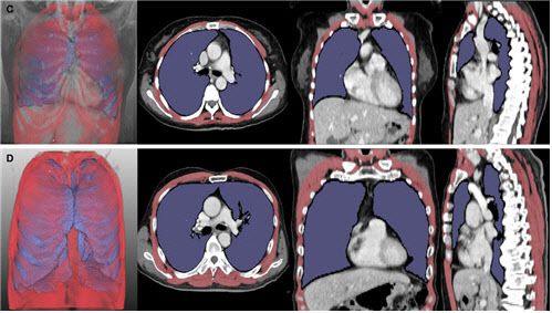 그러나 구강안면 근육이 약해져 구음장애(말과 발음이 부정확해지는 장애)가 동반된 환자는 이 검사의 정확도가 떨어져, 이를 대체할 새로운 호흡 기능 검사 방법이 필요했다. 이에 연구팀은 딥러닝 소프트웨어를 이용해 루게릭병 환자의 폐와 호흡근 위축 정도를 나타내는 폐 용적 지수(LVI)와 호흡근 용적 지수(RMI· 폐 및 호흡근 부피(㎤)를 키의 제곱(㎡)으로 나눈 값)를 개발하고, 병기 및 생존 기간과의 연관성을 확인했다.