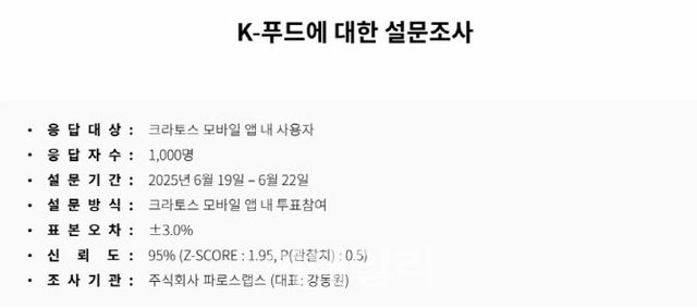 ‘K-푸드 확산을 위해 다양한 한식 프랜차이즈가 필요하다고 생각하느냐’는 질문에는 응답자의 84.6%가 ‘그렇다’고 답했다. 이 가운데 ‘매우 그렇다’는 비율은 33.6%, ‘어느 정도 그렇다’는 응답은 51.0%였다.
