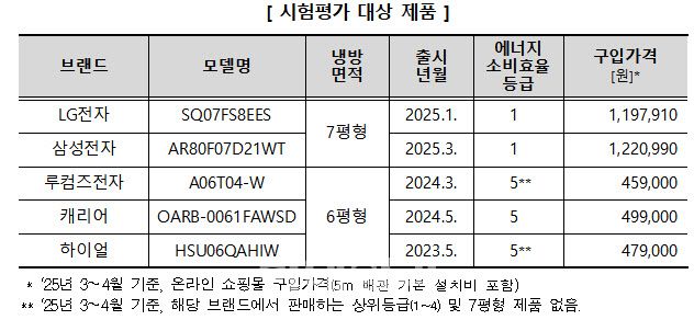 냉방속도 시험 후 대상 제품을 5시간 동안 작동하며 설치 공간 평균온도를 측정한 결과, LG전자, 하이얼, 삼성전자 3개 제품이 설치 공간 온도를 22.8~23.0℃ 범위 수준으로 유지해 설정온도(24℃) 대비 편차가 작았다.