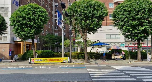 동구는 동부경찰서와 협의를 통해 유동 인구가 많은 6개 주요 횡단 보도와 교차로를 사업 대상지로 선정하고 총 1천만 원의 예산을 투입해 보행 안전 저단형 현수막 지정 게시대를 설치했다.