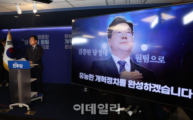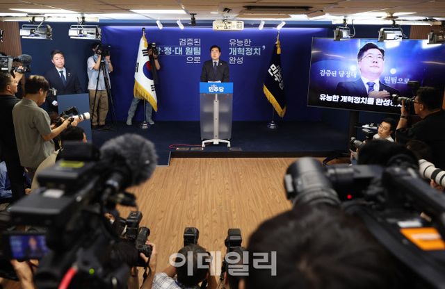 [이데일리 노진환 기자] 박찬대 더불어민주당 의원이 23일 서울 영등포구 여의도 중앙당사에서 당대표 출마 선언을 했다. 이재명 대통령과 원내대표로 호흡을 맞췄던 박 의원은 이날 기자회견에서 이 대통령이 대선 기간 착용했던 모델과 같은 운동화를 신고 나와 이미 검증된 원팀으로 이재명 정부의 개혁 과제들을 완수해 나가겠다고 포부를 밝혔다. 박 의원은 “지금 민주당에 필요한 사람은 유능하면서도 겸손하고, 소신이 확고하면서도 유연한 사람”이라며 “지금 이 시점에는 제가 가장 적임자라고 감히 말씀드린다”고 덧붙였다.