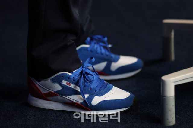 | [이데일리 노진환 기자] 박찬대 더불어민주당 의원이 23일 오전 서울 영등포구 여의도 중앙당사에서 당대표 출마 선언에 나서며 이재명 대통령이 대선 기간에 착용했던 모델과 같은 운동화를 신고 있다. |
