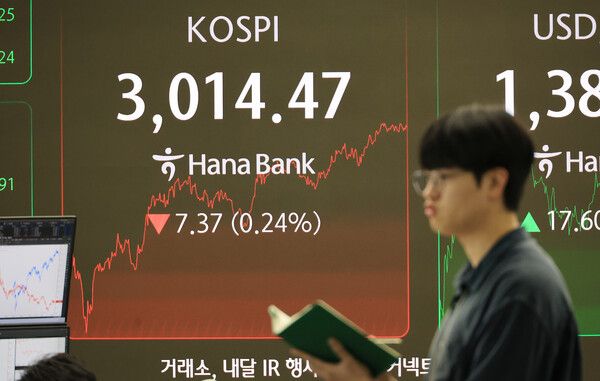 이날 코스피 지수는 전장보다 7.37포인트(p,0.24%) 내린 3014.47로 장을 마쳤다.