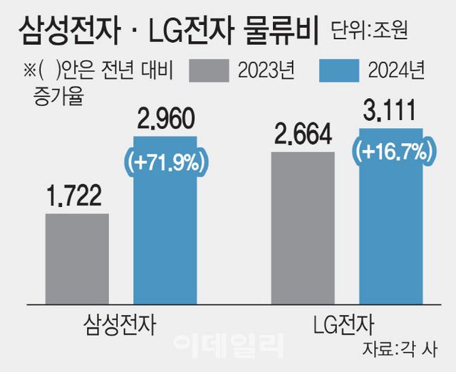 물류비 상승은 기업 실적에도 부정적으로 작용할 수 있다. 삼성전자와 LG전자는 지난해 물류비로 각각 2조9602억원, 3조1109억원을 지출했다. 전년 대비 각각 71.9%, 16.7% 증가한 수준이다. 올해 1분기 물류비로 삼성전자는 6407억원, LG전자는 7845억원을 각각 썼다. 판매비·관리비에서 물류비가 3~4% 정도를 차지하고 있다. 물류비 상승에 따른 비용 지출은 기업 수익성에 실질적인 영향을 줄 수 있다.