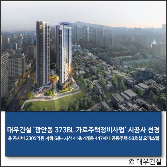 대우건설 관계자는 "가로주택정비사업의 특성상 사업 진행 속도가 다른 정비사업보다 빠르고, 광안리 핵심에 위치했다는 입지적 특성이 부각되는 현장이기 때문에 우수한 사업성이 기대 된다"고 전했다.